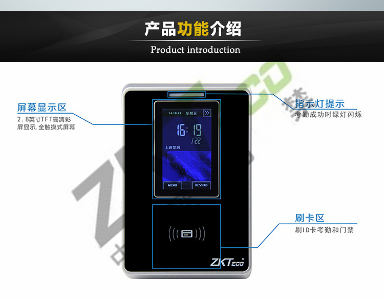 報警功能:防拆報警,非法開門報警,門未關好報警和脅持報警,并可輸出一路警報觸發信號,可外接警號,警燈或報警主機